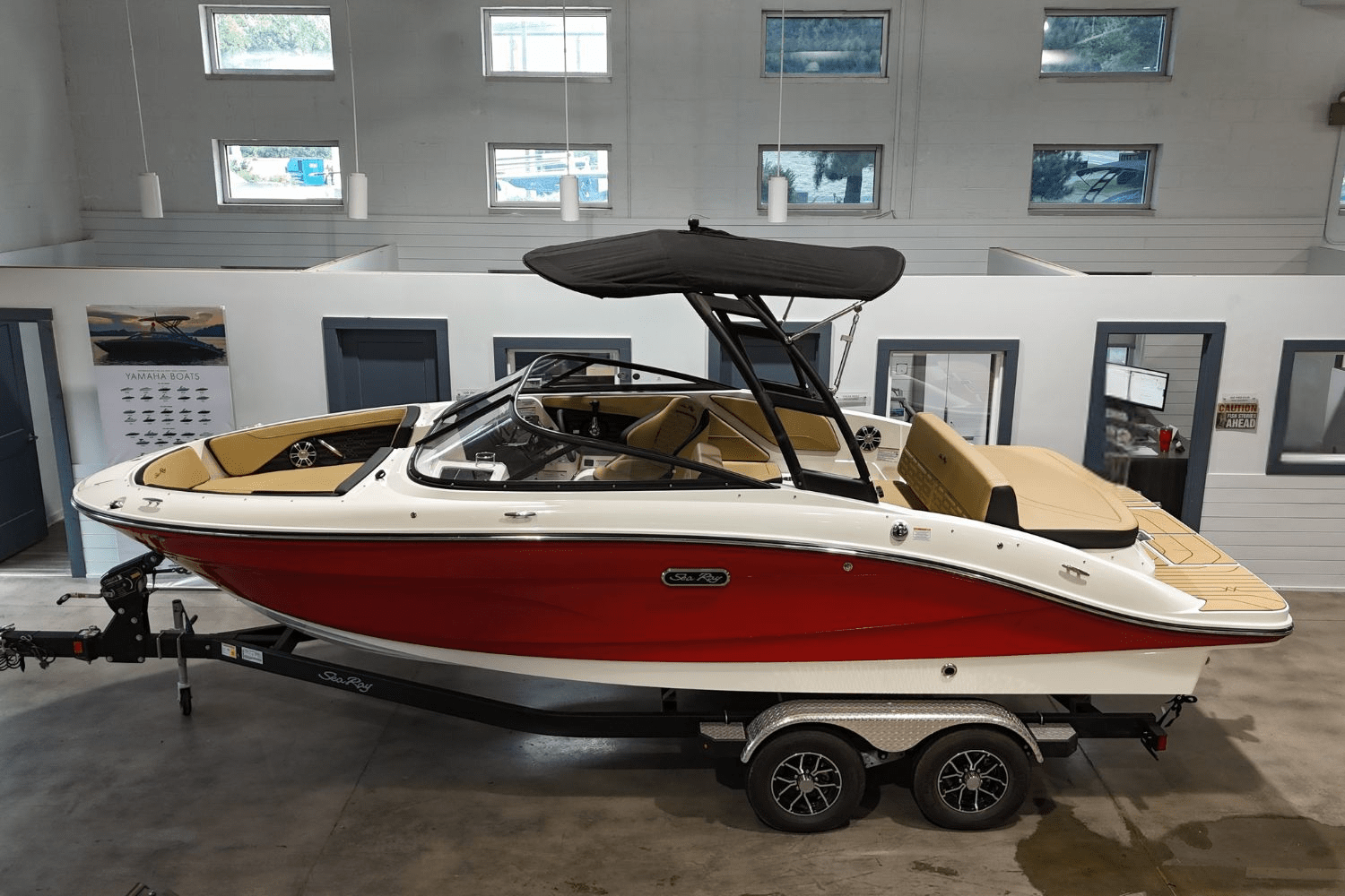 The 2025 Sea Ray SPX 210 blends sporty style and versatile performance in a sleek 21-foot package. Finished in striking Rally Red with a warm Dune interior, this bowrider is as eye-catching as it is functional. The swim platform features submersible SeaDek for comfort and traction, while the cockpit boasts snap-in Infinity Woven Vinyl flooring for easy maintenance. Powered by a responsive Mercury 250HP 4.5L engine, it delivers smooth, confident handling for cruising, watersports, or relaxing at anchor. The Entertainment Bundle adds a premium Fusion Audio System and ambient LED lighting, while the Essentials Bundle includes a cockpit cover, quick-connect fender clips, and SeaDek on the platform. A water sports tower with bimini provides shade and tow capability, and the dual-axle trailer makes transport simple. Stylish, capable, and well-equipped, the SPX 210 is ready for endless days on the water.