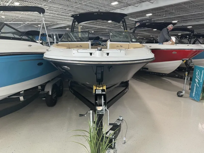 2024 Sea Ray SPX 230 - Solid Black with Champagne Graphics Dune Interior 6.2L B3 DTS Tandem Trailer IncludedThe 2024 Sea Ray SPX 230 is the ultimate blend of performance, style, and premium comfort, designed for boaters who want versatility on the water. With a striking Solid Black full-hull color, complemented by elegant Champagne Graphics, this boat makes a bold statement. The Dune interior provides a warm and inviting atmosphere, perfect for all-day cruising and entertaining.Powered by a 6.2L B3 DTS engine, this model delivers smooth, responsive handling with effortless power, making it ideal for everything from high-speed watersports to leisurely cruises. The deep-V hull ensures stability and agility, while the water sports tower with Bimini adds even more fun and functionality.Premium Features & Upgrades:? 6.2L B3 DTS Engine - Exceptional power and efficiency for all boating adventures.? Solid Black Full Hull with Champagne Graphics - A sleek, standout look.? Dune Interior with Infinity Woven Vinyl Cockpit Flooring - Luxurious and durable.? Seadek on Swim Platform - Comfortable, non-slip surface for easy water access.? Bow Filler Cushion - Converts the bow into a spacious lounging area.? Cockpit Cover with Tonneau Cover - Protects your boat from the elements.? Water Sports Tower with Bimini - Perfect for wakeboarding, skiing, and shade.? Painted Tandem Trailer with 2nd Axle Disc Brakes - Durable and reliable transport.? Essential Bundle Package - Added convenience and must-have features.? Battery Switch & NMMA Core Engine Charge - Enhanced power management.? 120V/60 Region Compliance - Ensuring optimal functionality in your area.? Two Bucket Seats (Standard) - Comfort and support for captain and passenger.Designed for those who demand luxury, power, and versatility, the 2024 SPX 230 is the perfect boat for making memories on the water. With a premium feature set and a tandem trailer included, this boat is ready for endless adventures!