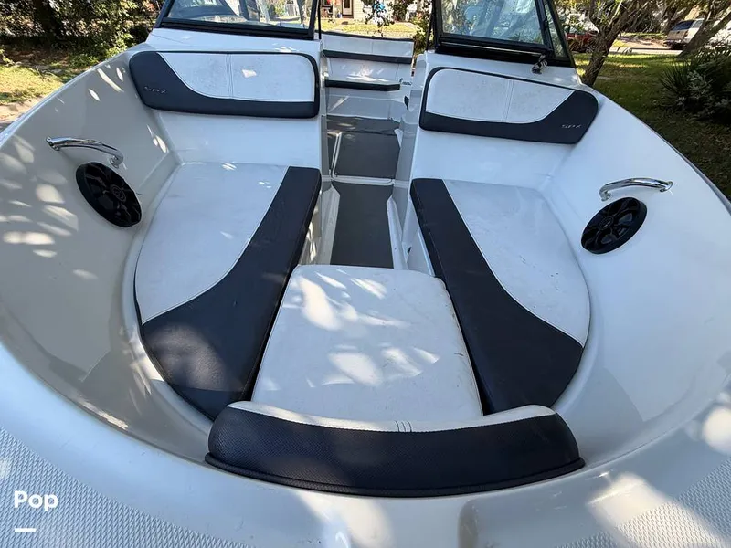 Inside, the SPX 210 feels bigger than its size. The open bow has deep seating and grab handles, the cockpit layout is social and functional, and the rear sun pad and swim platform make hanging out on the water a breeze. Equipped with audio, a bimini top, and a SeaDek swim platform, all designed to make your day on the water more enjoyable.