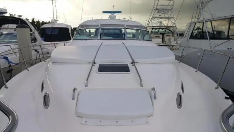 2 Cabins and 2 heads w/showers, Galley, Caterpillar power, Bimini top, Foredeck sun pad, Large swim platform.