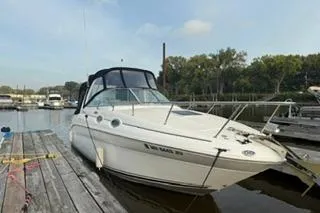 This exceptionally clean and well-maintained 2004 Sea Ray 260 Sundancer is a freshwater-only boat with just 464 original hours, powered by a reliable MerCruiser 350 MAG MPI fuel-injected V8 paired with a Bravo III dual-prop drive for smooth performance and excellent handling. Designed for both day cruising and overnight stays, it features a spacious cockpit with wraparound seating, removable table, wet bar with sink, adjustable captain's chair, convertible lounge seat, and full camper canvas enclosure to extend your boating season. Below deck, the cabin comfortably sleeps four with a convertible forward V-berth, mid-cabin berth, enclosed head with a vacuflush toilet and sink, and a well-equipped galley including a microwave, refrigerator, cooktop, and ample storage. The boat shows very well throughout, with clean upholstery, and tidy engine compartment. Turn-key and ready for the water, this 260 Sundancer offers the perfect combination of comfort, performance, and value in a highly sought-after cruiser.