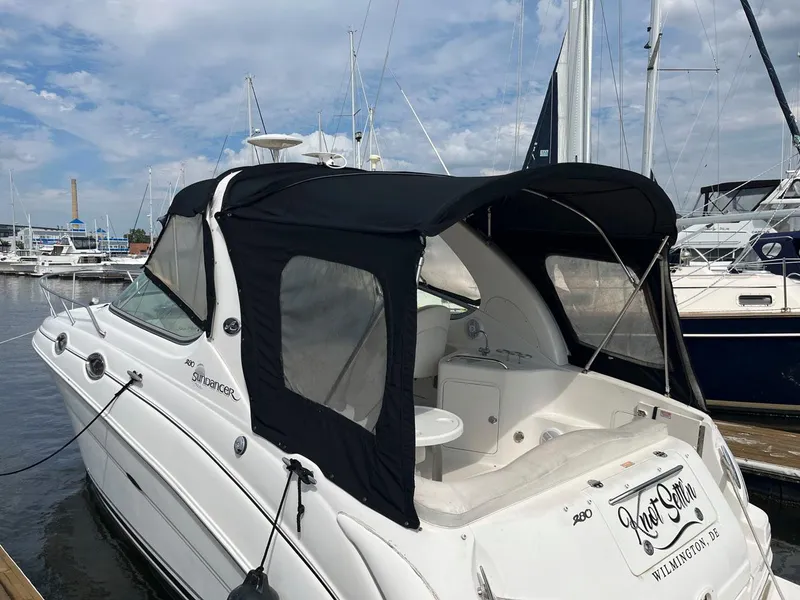 The Sea Ray 280 Sundancer is just the boat you've been waiting for. Beautiful. Sleek. Comfortable. With room to sleep six, she's just right for families who hate to leave the water when darkness falls. Standard power is a MerCruiser 496 Magnum Bravo III stern drive.