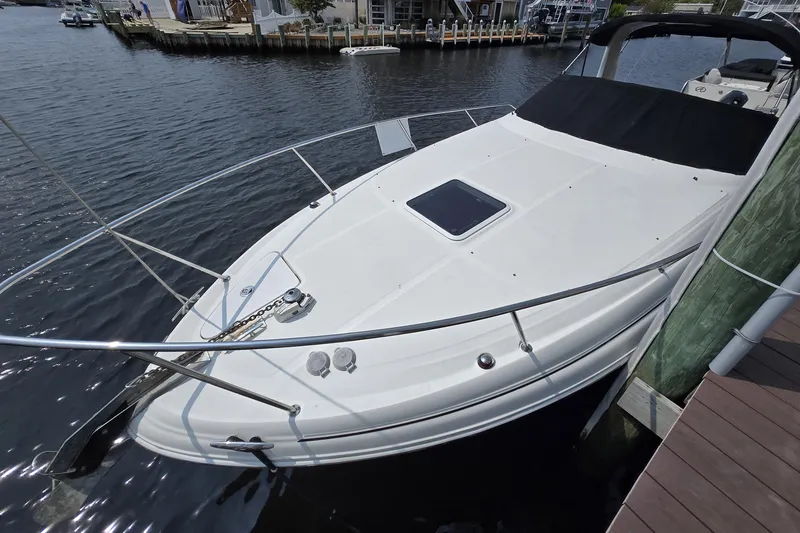 she is powered by twin 4.3 liter v6 mercury mpi 220hp engines with bravo 3 outdrives. one engine was replaced appx 6 to 8 years ago with a fresh water cooled engine. the boat has a full galley and enclosed head and shower, bimini top and cockpit cover, windlass anchor too. GENERATOR and air conditioning on board. clean interior.