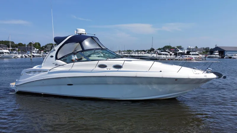 The 2004 Sea Ray 320 Sundancer blends timeless design, solid performance, and all the comfort you need for weekends on the water or longer adventures aboard. Powered by twin MerCruiser 6.2L MPI V-drive inboards, this cruiser offers reliable performance and easy handling in a range of sea conditions.