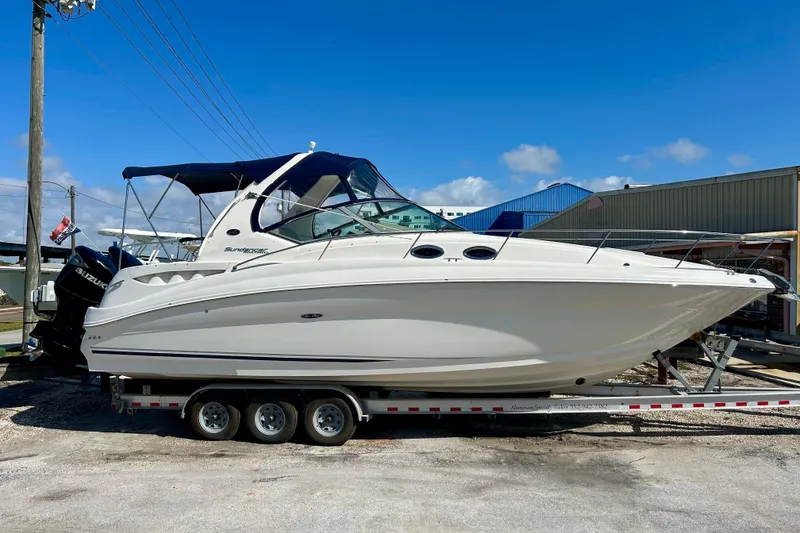 2005 Sea Ray 320 Sundancer re powered with outboards. Twin Suzuki 300 HP Duo Prop's with 28 hours (under warranty until May 2028) mounted to a Porta Bracket delivering amazing performance. Bow thruster for outstanding maneuverability and docking. Kohler 5 Kw generator, Air Conditioning, Cherry interior, two Garmin displays. Cavernous storage space where the engine room used to be! All work professionally done to the highest standards. Great opportunity on a proven design with modern propulsion.