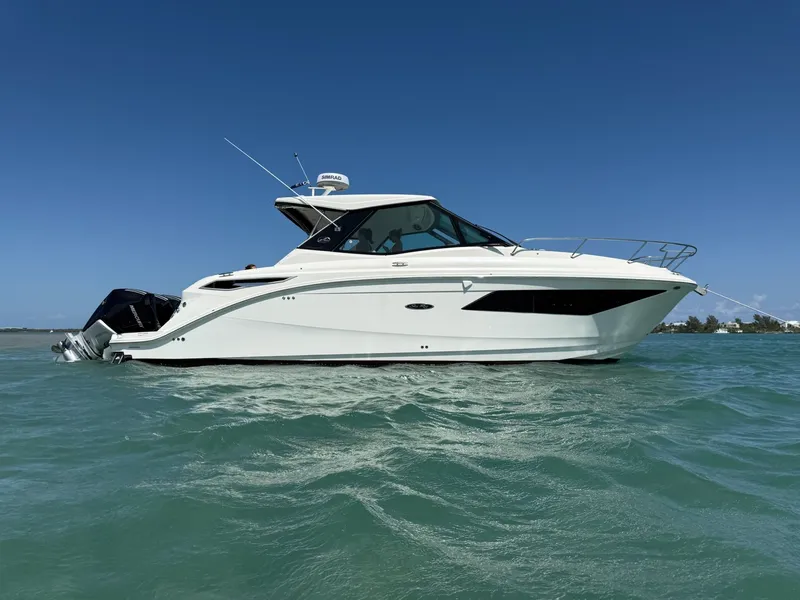 2023 Sea Ray 320 Sundancer - easy to see in Stuart Fl. Clean white hull sides, roughly 200 engine hours and fully serviced in January 2026 !! This 320 is well appointed with an abundant amount of equipment shown below. ***Manufacturer warranty remaining ***