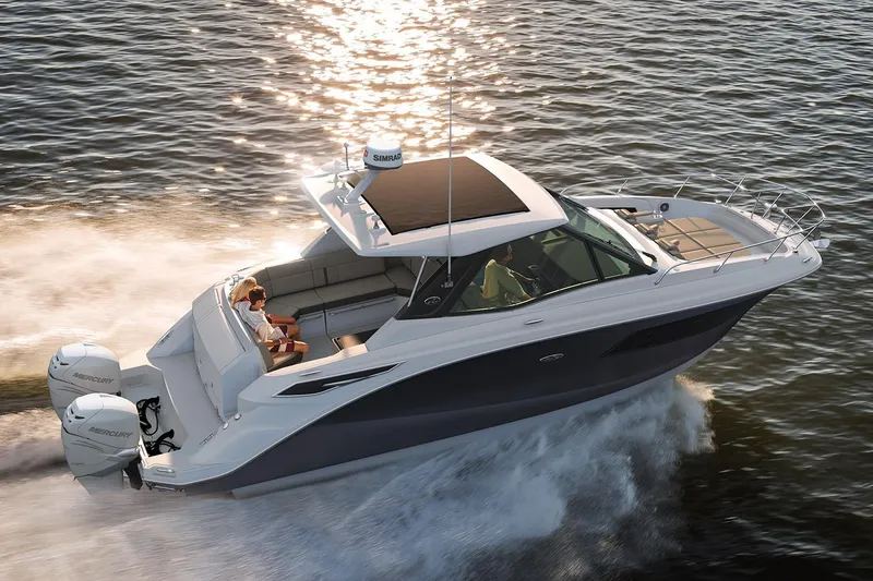 The Sundancer 320 Outboard continues a bold new chapter in the Sundancer story, blending the values of a cruiser and a sport boat/bow rider in one compelling and harmonious package. Thanks to an inventive reexamination of deck architecture, the bow area is more usable than ever before; meanwhile, the cockpit affords effortless, versatile enjoyment of the water, and the cabin provides a comfortable place to get out of the sun or tuck in for the night. Outboard power comes with zero tradeoffs in terms of space, comfort or enjoyment. A true natural, the Sundancer 320 Outboard reimagines the possibilities of how a cruiser can look, feel and perform. This model is also available with a coupe option.