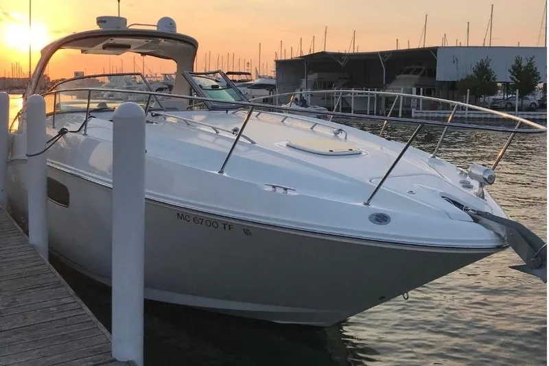 Freshwater/Great Lakes boat since new. This vessel features Twin 8.1-litre 370-hp MerCruiser Horizon Gas Engines with only 390 original hours. Notable features include but are not limited to the following: Air-Conditioning & Heat, Head (Vacuflush) w/Vanity/Sink/Shower, Hardwood flooring in cabin, Electronics Package (VHF Marine Radio, GPS/Chartplotter, MerCrusier SmartCraft, etc.), Kohler Generator, Cockpit Wet Bar w/Sink/Refrigerator, Windlass Anchor, Hardtop w/ Canvas Camper Top, Premium Sound System in cockpit, and MUCH more!