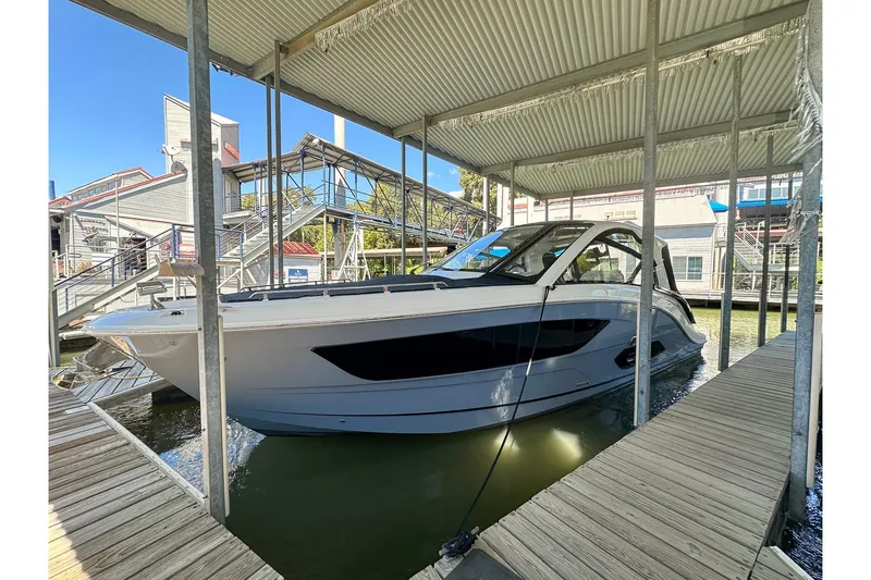 With breathtaking details, upscale amenities and innovative technology, the Sundancer 370 delivers an extraordinary on-water experience perfect for day trips or weekend stays. It blends the values of a cruiser, bowrider and coupe in one elegant vessel with something for everyone. As the newest member of the award-winning Sundancer family, the Sundancer 370 features an eye-catching next-generation design that embodies Sea Ray's modern design principles. Sea Ray designers and engineers have thoughtfully considered every inch of the boat to maximize space and function, from the three-position transom seat to the expansive C-shaped bow.