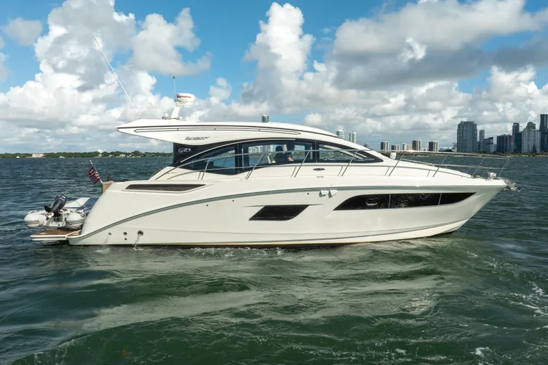 This well-maintained 2016 Sea Ray 400 Sundancer has been kept under a covered slip, protecting it from the harsh Miami sun and preserving its condition inside and out. Powered by twin Cummins QSB 6.7 diesels paired to a reliable V-drive system (not the costly pod drives), this Sundancer delivers confident performance, smooth handling, and low-maintenance peace of mind.