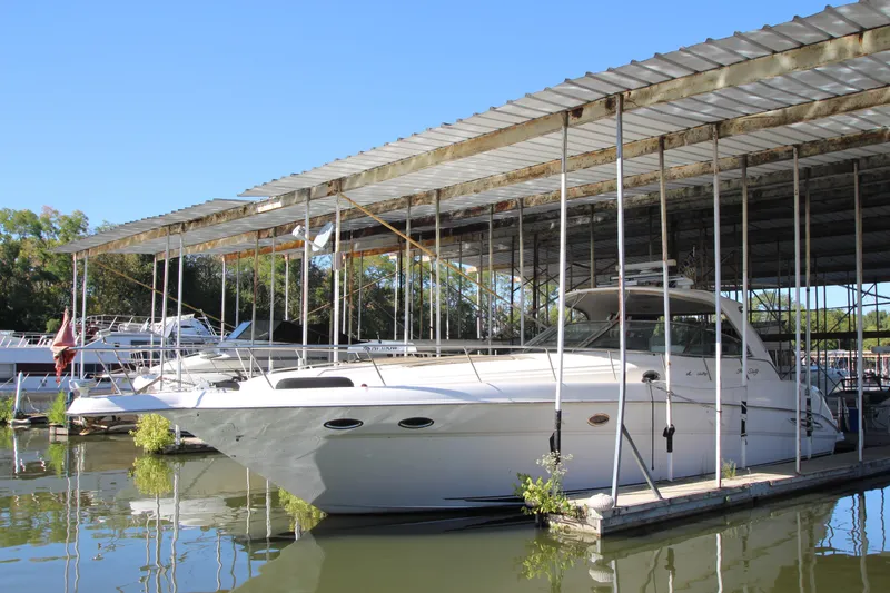 PowerBoat Guide had this to say; One of the largest domestic express yachts available when she was introduced in 1999, the Sea Ray 460 Sundancer is an impressive blend of American sport boat styling, luxury-class accommodations, and state-of-the-art construction. While the styling was perhaps more conservative than most European express yachts of her era, a wide beam and an expansive two-stateroom, two-head floorplan provide the 460 with cabin dimensions that European imports-with their relatively narrow beams-could only envy. Sea Ray interiors have always been among the best in the business, and the accommodations of the 460 are impressive in every respect. The mid-stateroom, complete with an enclosed head and standard washer/dryer, offers complete privacy behind sliding pocket doors. (Note that the settees in both the salon and mid-stateroom convert to double berth at the touch of a button.) In the cockpit, the facing aft settees convert electrically into a huge sun pad. A gas-assist hatch provides easy access to the engine room. An extended swim platform was standard. Twin 430hp V-drive Cummins diesels cruise the 460 Sundancer in the low 20s (27-28 knots top).