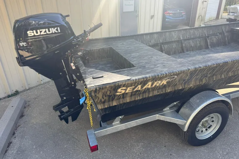 The 2025 SeaArk 1648 MV Special with a 25 HP Suzuki outboard is a versatile, 16-foot aluminum jon boat made for fishing and other activities. It features a modified "MV" hull, an economy floor with a trolling motor mount, a switch panel with accessory plugs and lights, and comes with a galvanized trailer. Customers praise its durability, stability, and maneuverability, while the Suzuki 25 is noted for reliability and fuel efficiency.