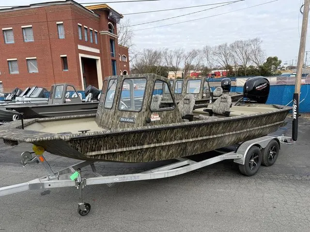 2026 Seaark 2072 MVJT Flatcat Jet, This Seaark Flatcat is equipped with a 150/105 Mercury four stroke JET motor. This boat is loaded with options including LIVEWELL recirculating pumps, bow step box, livewell step box, timber runner package with LED spot lights, Black out amped package, upgraded Aluminum trailer, pods, pod ladder, 4 Captain chairs, line x interior, bottomlands camo, upgraded steering wheel, tilt helm, and much more!