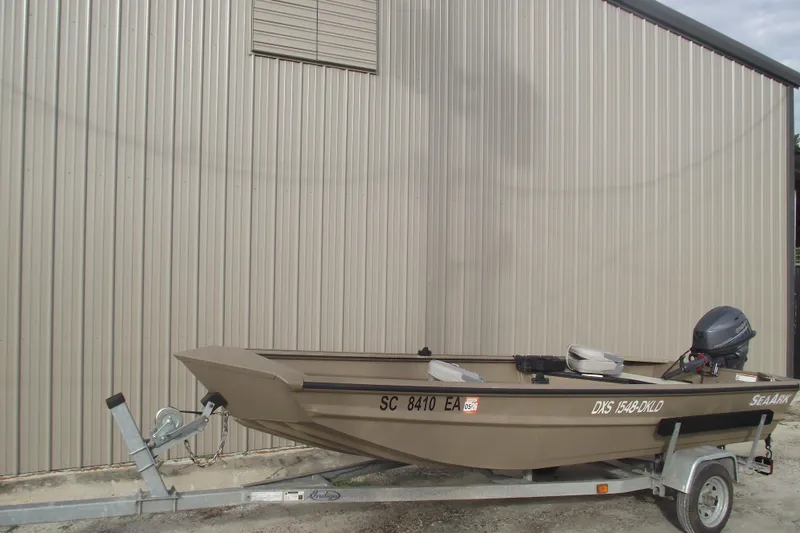 Introducing the SeaArk DXS 1548 DKLD, a versatile Jon Boat crafted from durable aluminum with a modified Vee hull design, ensuring stability and performance on the water. This 15-foot boat, built in 2022, is perfect for both fishing and recreational outings. Powered by a reliable Yamaha F20LWPHB outboard engine, this boat delivers 20 horsepower and has only 16 hours of use, showcasing its excellent condition. The 3-blade aluminum propeller enhances efficiency and maneuverability, making it an ideal choice for various water activities. With its robust construction and lightweight design, the SeaArk DXS 1548 DKLD promises an enjoyable and smooth ride. Whether you're navigating calm lakes or exploring rivers, this boat is ready to meet your aquatic adventures with ease and reliability.