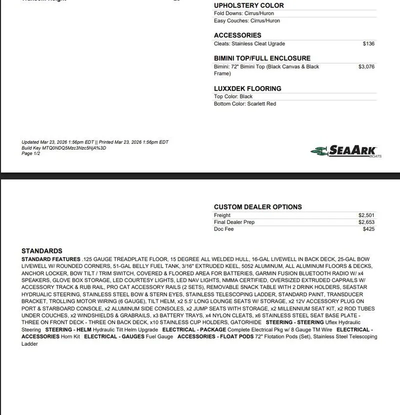 Use our boat payment calculator to estimate monthly payments for 2027 SeaArk Easy 200. Enter your down payment, choose a loan term, and adjust the interest rate to see an instant payment estimate — ideal if you're calculating boat payments before you enquire. Wondering how much does a Aluminum Fishing cost in today's market, or how much does a SeaArk cost for similar models? This boat financing calculator helps you compare scenarios in seconds, whether you're considering used boat financing or a new purchase.