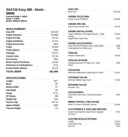 Contact Midwest Marine Boat Co Llc about 2026 SeaArk Easy 200 / DF200ATX