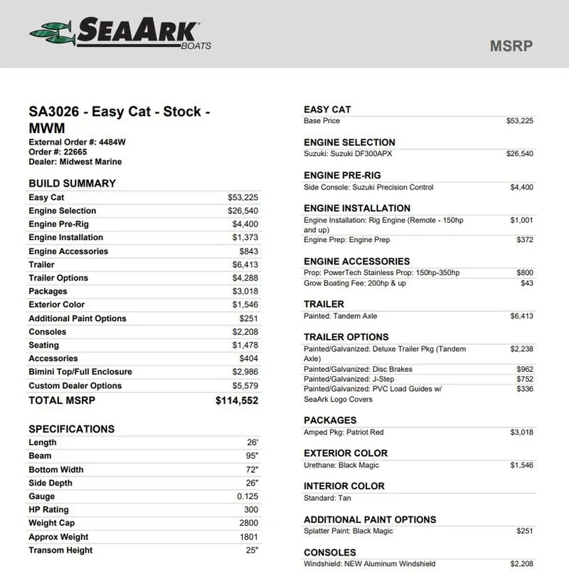 Contact Midwest Marine Boat Co Llc about 2026 SeaArk Easy Cat