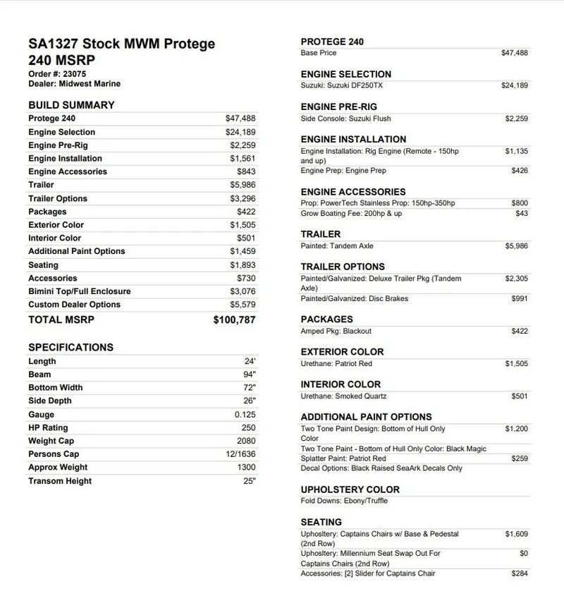 Contact Midwest Marine Boat Co Llc about 2027 SeaArk Protege 240