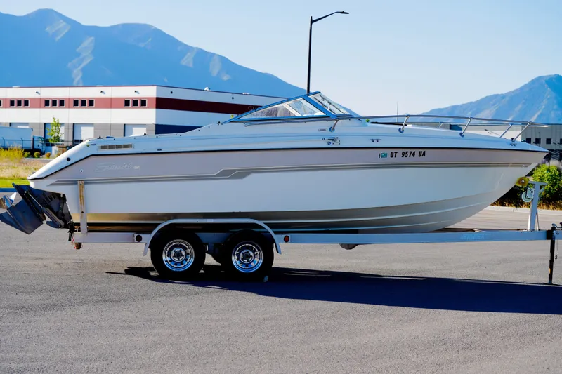 1997 Seaswirl 230 Cuddy Cabin, Springville, Utah - Century Marine Utah Boat Overview Length: 23', Beam: ~8'3" - an easy-to-tow, versatile cuddy cabin boat Strong, durable fiberglass hull - perfect for lakes and nearshore adventures Ideal for family cruising, overnight trips, or fishing ⚙️ Power & Performance Single V olvo - reliable power for cruising and towing water toys Smooth handling with plenty of zip - great blend of performance and fuel economy Solid hull design keeps the ride stable, even when conditions get a bit choppy Comfort & Cabin Cozy cuddy cabin with enough space to sleep two - stay overnight or escape the sun Compact sink area and storage cubbies for your gear Roomy cockpit with plenty of seating for family or friends Bimini top included - stay shaded on hot days Fishing-Friendly Room for rod holders or downriggers if you want to fish Open cockpit makes it easy to move around while reeling in your catch Trailer & Extras Comes on a dual-axle trailer - ready to tow wherever adventure calls Hull and mechanical systems in solid condition Upholstery shows normal age for its year - priced accordingly so you can make it your own Batteries and basic systems recently checked and functional ✅ Why This Boat? Affordable entry-level cuddy - big enough to spend the night, small enough to tow easily Great all-around layout for day cruising, overnighting, or casual fishing At $8,000 , this is a budget-friendly way to get on the water with plenty of summer left to enjoy Let's Get You On the Water! See it today at Century Marine Utah in Springville. Bring your gear and make this Seaswirl 230 your weekend escape!
