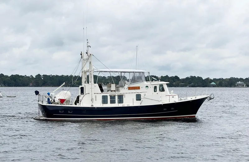 The original owner spared no expense in building Stella, originally Glacier Star, outfitted by Ross Yachts in Clearwater, Florida. Her hull was constructed by Nelson Trawlers in Titusville, FL. With subsequent owners, STELLA has been maintained with many upgrades including two new continuous duty John Deere engines in 2009, Awl-Grip painted topsides fall 2015 and side and aft decks Awl-Grip paint in August 2016. Upgrades since 2018 include through-hull bolts replaced, new props, re-galvanized chain, new aft cabin air conditioning, new life raft, LED lighting, lithium-iron-phosphate house batteries, 12-volt fans, Mantus anchor, new hatch glazing, navigation systems, and numerous other miscellaneous updates. In 2024 STELLA received new bottom paint, a custom made flybridge bimini with stainless steel supports and a new Garmin chartplotter. She is ready to go!