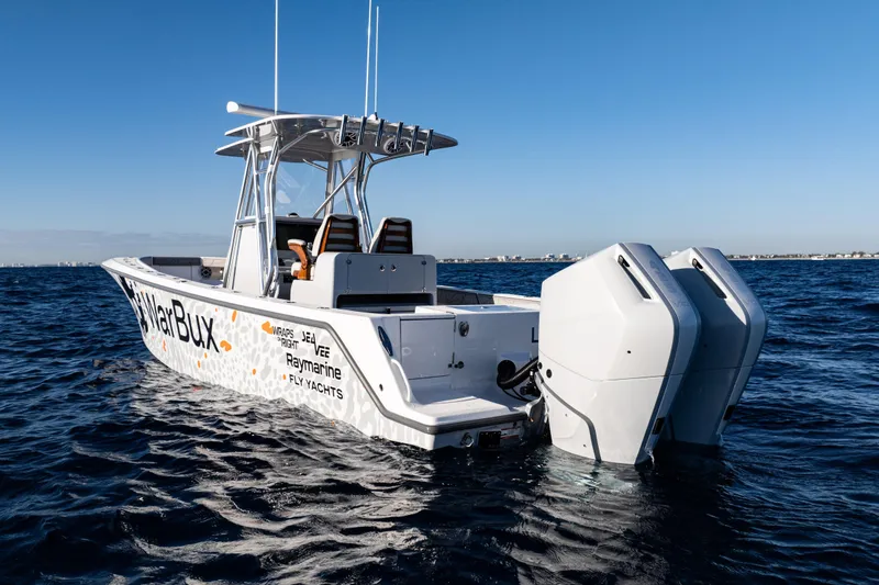 This 2026 SeaVee 320B is a heavily customized build designed for serious offshore fishing with premium fit and finish throughout. Powered by upgraded twin Mercury 425 V10 outboards (custom painted Light Gray with White Mohawks), this 320B combines performance, aggressive styling, and a dialed-in bait and tackle configuration.