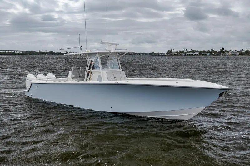 This 2022 SeaVee 370Z is a high-performance, custom-built 37-foot center console designed for serious offshore anglers and luxury-minded boaters. Built with SeaVee's signature stepped hull, it delivers a smooth, fast, and stable ride even in rough conditions. Powered by triple 300hp Mercury outboards, the 370Z offers impressive speed, range, and maneuverability, utilizing the Optimus Joystick.