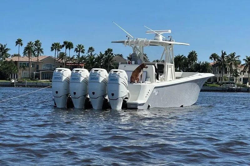 Powered by quad Mercury 350 Verado outboards with approximately 1,000 hours, this vessel offers impressive performance and redundancy for offshore runs. The boat has been covered lift kept and has no bottom paint, reflecting attentive ownership and preservation.