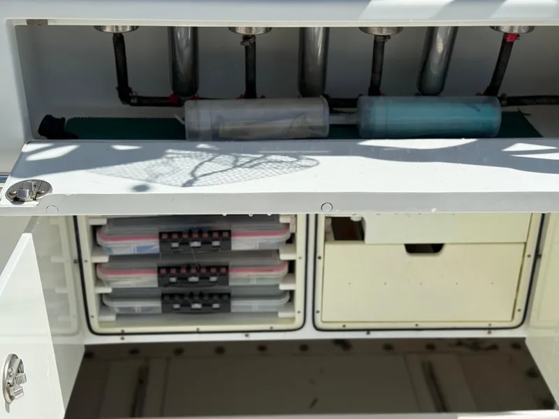 Repowered in 2021 w/New V8-300 Mercury Verados w/only 305 hrs, Full Custom Tuna Gap Tower w/Kite Box & Full Controls, Custom Hull Color Bottom Black & Underside both Fiberglass Tower Sections, 3-Sided Polycarbonate Console Enclosure, Custom Side Dive Door w/Ladder, Fresh Water 90 Gallon Custom Tank Washdown & Shower, Gemlux Bluewater Outrigger Bases w/22' Lees Carbon Fiber Poles, Fiberglass Helm/Tackle Station w/Deep Storage, Slide Out Frigid Rigid Cooler & Seat Cushion, Transom Livewell + 2-Floor Wells + Frw Floor Livewell + 2-Above Deck Hook Ups Powered by 2-3-Pump Seachests, 18-Console Rod Holders, 43 -Gunnel Rod Holders + 2-Swivel & 7-Electric Reel Outlets, Under Gunnel Lighting Blue, 7 AGM31 Batteries w/Onboard Charger & 30amp Shore Power Hookup, Electronics: Full Raymarine Pkg: 12" GPS In Tower, 2-16" GPS Hydro Touch @ Helm w/12KW Open Ray Radar + Auto Pilot Full JL Audio Sound System, Donny 5617224261