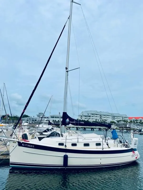 The Seaward 26RK is an American trailerable sailboat with a lifting keel, a lifting rudder, and a hinged mast for de-rigging, making it an ideal boat to trailer, gunkhole, cruise, and race.