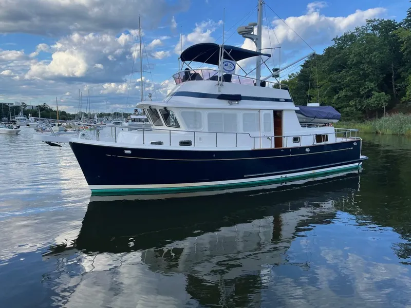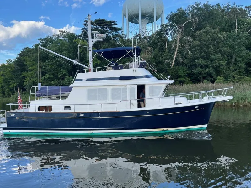 Classic Aesthetics: The timeless design combines traditional trawler styling with practical features, appealing to those who appreciate classic yacht lines.
