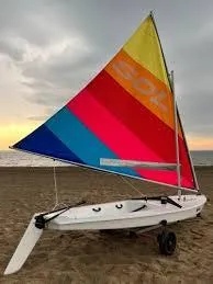 Length13 ft 9 in Beam4 ft 1 in Hull weight120 lbs Hull constructionCored composite MastAluminum alloy Sail area75 sq ft Sail material3.8 oz Dacron Luff13.25 ft Leech13.25 ft Foot14.25 ft SailMade by North Sails with visibility window Crew1-4 BuiltUSA