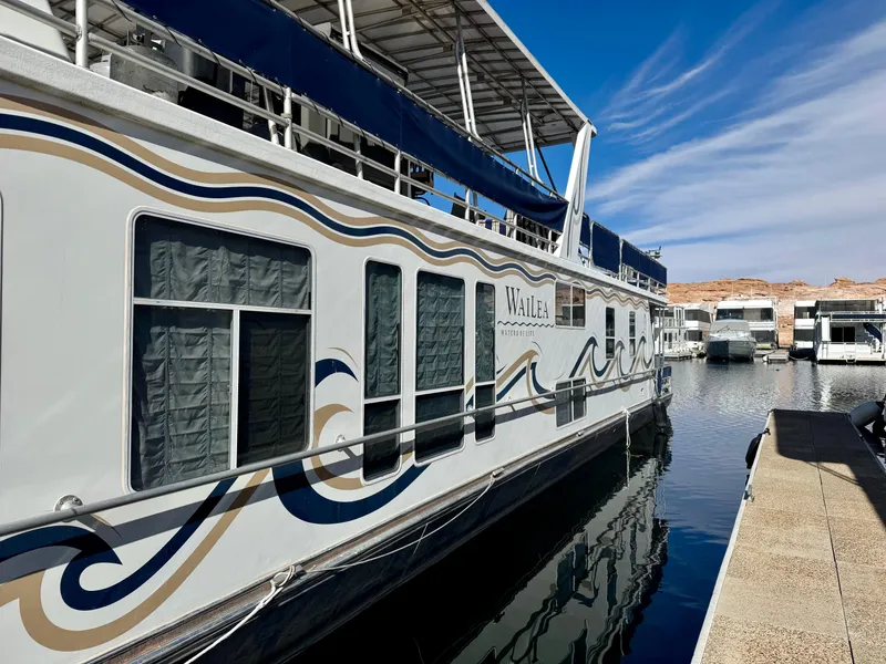 Experience classic Lake Powell houseboating aboard Wailea, a well-maintained 2003 Sharpe houseboat offering one of the largest main salons in its class, excellent outdoor entertaining space, and prime moorage at Antelope Point Marina-one of Lake Powell's most desirable locations.
