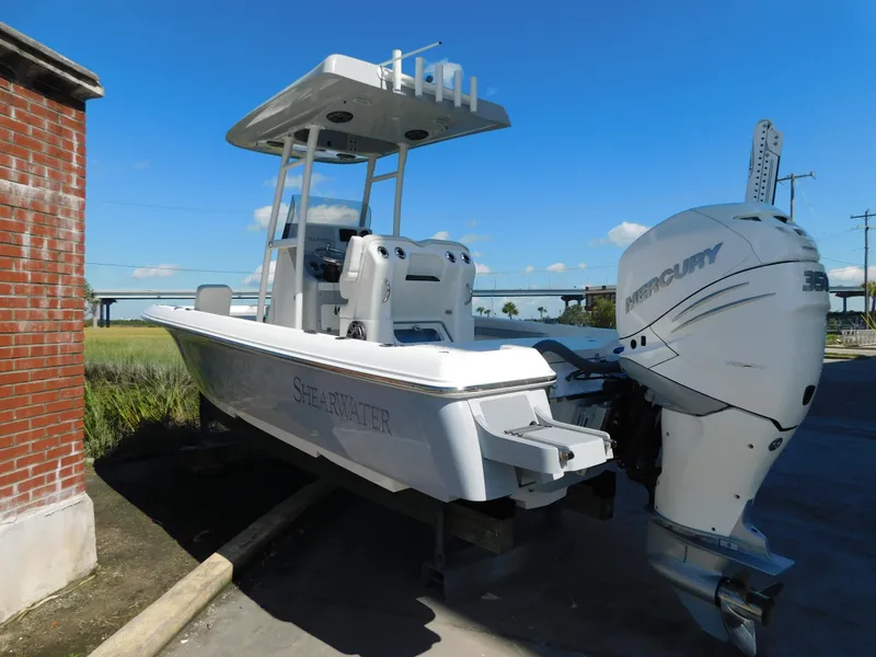 2022 SHEARWATER 250 XTE POWERED BY A MERCURY 350XL VERADO AND INCLUDES AN AMERATRAIL TANDEM AXLE ALUMINUM TRAILER.