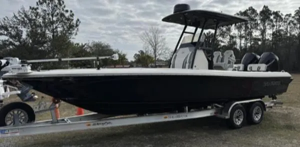 This Beautiful Lift Kept Black Example of a 2023 Shearwater 27 Carolina Open comes powered by Twin Mercury 225 with only 70 hours! The 100 Hour service was just completed. She has always been kept on a covered lift since new. She is loaded with all the options including a Trolling motor and She also includes an AmeriTrail Tandem Axle trailer. This boat is Turn Key and Ready To GO!