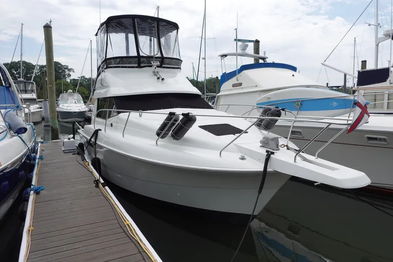 Many appreciate the boat's solid construction and reliable performance, praising its smooth handling and stability on the water. The convertible design is frequently noted for providing a versatile cockpit area that can be enjoyed in various weather conditions. Additionally, users value the ample storage space and well-equipped galley, which enhance the overall boating experience. Some mention that while the boat shows its age in certain finishes, it remains a dependable and enjoyable vessel for families and fishing enthusiasts alike.