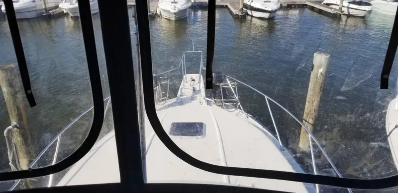 Twin Fresh Water cooled 454's Crusader Inboard Engines at 350 hp each. Spacious flybridge with seating for 6, cockpit with transom door and swim platform. Large wrap-around windows and excellent headroom make her amazingly bright and open down below. She can comfortably sleep 6. As you enter the salon to starboard is a convertible sofa, down 3 steps to port is a convertible dinette, across from the dinette to starboard is the Full Galley down with 110/12 Volt refrigerator, sink, two burner stove, and microwave oven. To port is the head with vanity, mirror, toilet and large stall shower. Forward is the master stateroom with walkaround queen island bed, hanging lockers and privacy door. With Air conditioning/reverse cycle heat, and plenty of room, this boat is a great family cruiser. Listed exclusively with PennyBridge Marine 845-786-5100 Call today to schedule a showing.