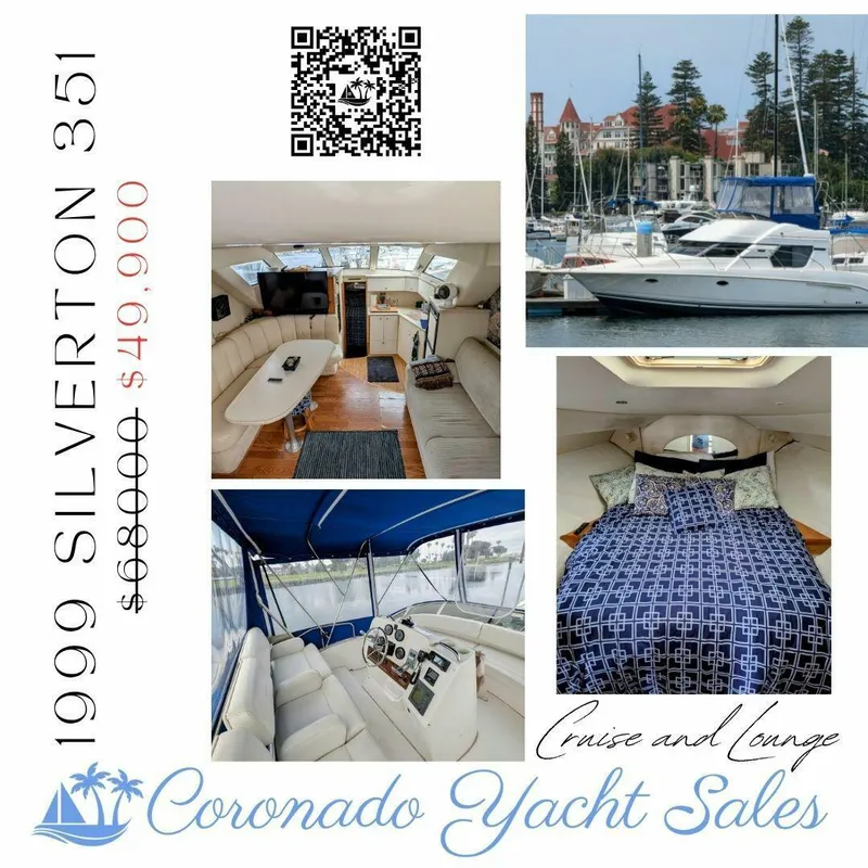 Ready for adventure! This 1999 Silverton 351 Sedan Cruiser has undergone **extensive recent upgrades**, making it a fantastic value. **Please note: The current slip in Coronado is non-transferable.** Highlights include: