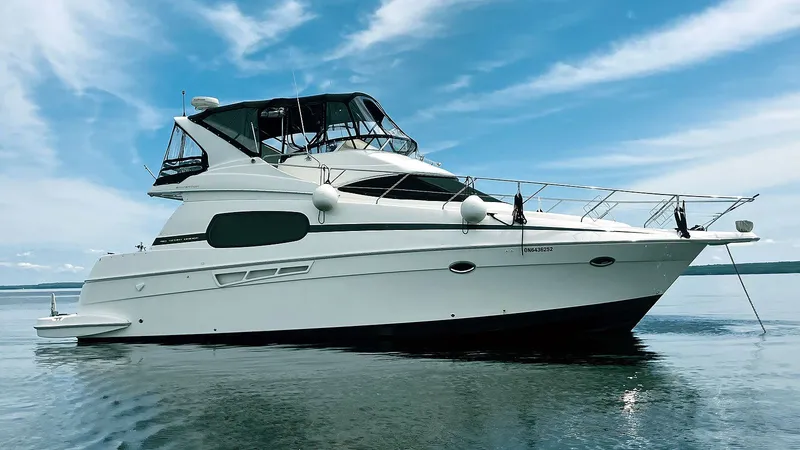 Step aboard this beautifully upgraded 2001 Silverton 410 Sport Bridge, a proven cruising platform that blends spacious comfort with dependable diesel performance. Powered by twin Cummins 8.3L diesel engines, she delivers the torque, efficiency, and reliability that experienced cruisers demand.