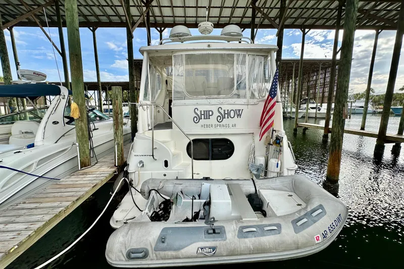 Why "Ship Show" Stands OutThis Silverton 43 is a Looper veteran with an ideal balance of comfort, range, and ease of operation. With features like the bow thruster, dinghy davit, Reverso system, and excellent liveaboard layout, she's perfectly suited for extended cruising or full-time living aboard.