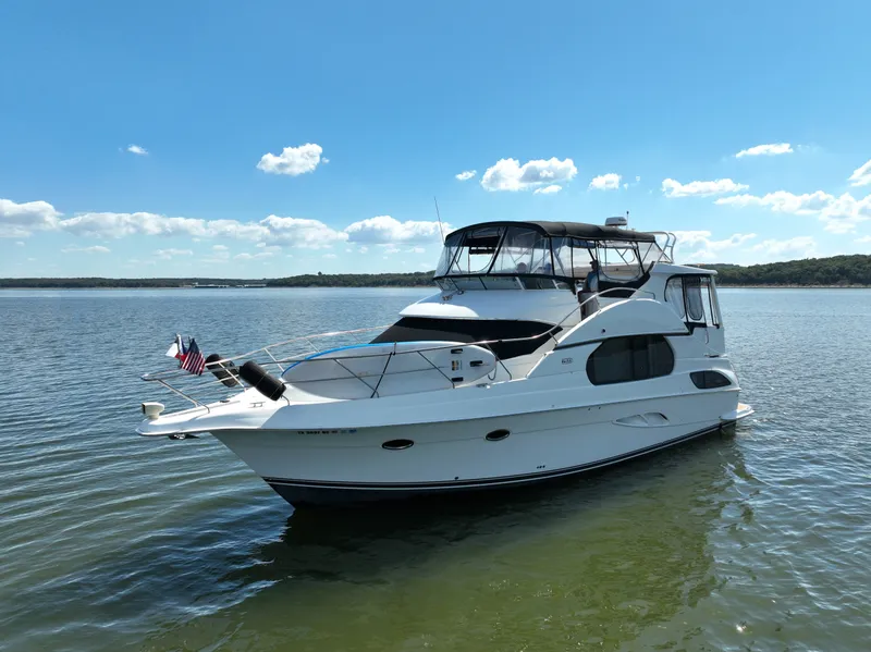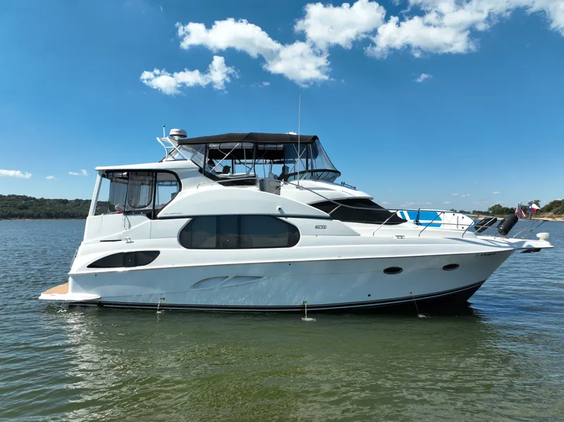 2005 Silverton 43 Motor Yacht, Offered in cooperation with Plano Marine, Boat is Located on Lake Texoma. 2005 Silverton 43 Motor Yacht: A Class Of Its Own Description: The 2005 Silverton 43 Motor Yacht stands as a paradigm of refined engineering, sleek design, and top-tier performance. Originally crafted with the attention to detail that Silverton Yachts are renowned for, this vessel embodies the spirit of adventure and freedom. This exemplary vessel is currently located at the picturesque Lake Texoma, ready for its next voyage. Exceptional Performance Built with two powerful engines, the 2005 Silverton 43 Motor Yacht offers first-rate performance, reliability and exceptional fuel efficiency. Navigate with ease and confidence, whether you're gliding across calm waters or weathering a storm. Luxurious Interiors The yacht's remarkable interiors offer the perfect blend of luxury and comfort. Designed to accommodate up to six people comfortably, its cabin house boasts plush seating, a fully equipped modern kitchen, two spacious suite-style cabins with private bathrooms, and ample space for leisure and entertainment. Enhanced Features This yacht stands out for its range of enhanced features including state-of-the-art navigation system, excellent sound system, extensive storage space and a large swim platform perfect for water activities. The vessel also holds A/C units and a generator to ensure complete comfort at sea. Enjoy The Experience At Lake Texoma Docked at Lake Texoma, the 2005 Silverton 43 Motor Yacht provides an opportunity for you to explore the lake's stunning vistas or charter it as a luxurious retreat. With its first-rate amenities and robust performance, you are guaranteed a brilliant boating experience. Contact Us: For more information or to schedule a viewing, please reach out to us. Explore the marvelous journey that awaits you with the 2005 Silverton 43 Motor Yacht.