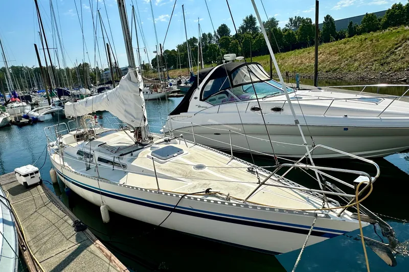 Introducing the remarkable 1983 Sirena 38, a stunning Racer/Cruiser that seamlessly blends performance with comfort. This wonderful vessel boasts an overall length of 38.33 feet, showcasing a sleek fiberglass hull with a displacement shape and a fin keel, perfect for both racing and leisurely cruising. Powered by a reliable Volvo Penta 2003B HE BT inboard engine, this boat delivers 28 horsepower, ensuring smooth sailing. Set up for both short handed sailing and racing, the Sirena 38 can provide both relaxing and exciting times on the water.