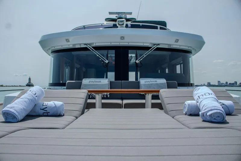 Playbook is a 2022 58 Sirena Flybridge that has been freshwater only and full-time captain maintained since new. Under 300 hours on her main engines, she is ready to cruise in the Great Lakes and beyond. She is fitted with the hydraulic bimini and folding hydraulic radar mast in order to clear Chicago River bridges with ease. She boasts a 3 cabin, 3 head layout plus crews quarters.