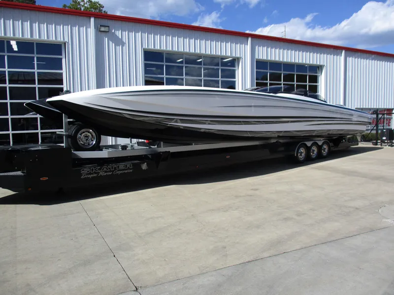 2015 Skater 46 powered by twin Mercury Racing QC4V1350s with 68 hours, M8 drives, Garmin 7612 centered in dash, (2) Garmin 7608, (2) Mercury Vessel View 7, Fusion/JL Audio, dual helm, Livorsi Smartcraft analog gauges, GPS speedometer, Sea Deck Flooring, cockpit cover, and Douglas Marine tilt trailer included. Financing and transportation available.
