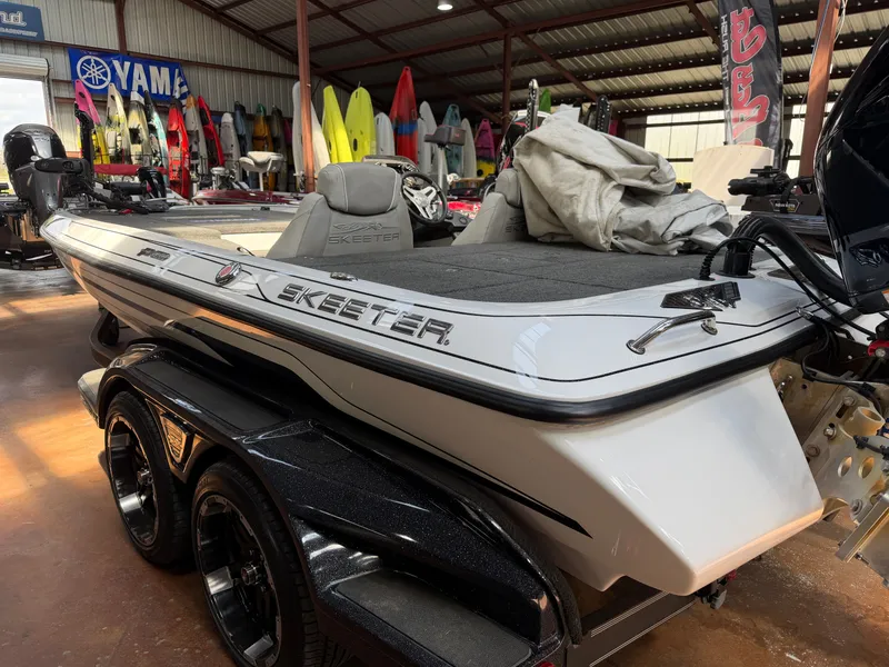 Boat equipped with Minn Kota Ultrex 112 36V Trolling Motor Humminbird XPLORE 12 at Console - New Humminbird XPLORE 12 at Bow - New 2 - Minn Kota Talons 8' Poles Atlas Hydraulic Jack Plate Hydraulic Steering Hot Foot/Pro Trim Cover Performance & Engine Engine: Yamaha V MAX SHO VF250LA (4-Stroke) Horsepower: 250 HP Fuel Capacity: 48 Gallons Draft: 16 inches Steering: Tilt Hydraulic Steering Dimensions & Capacities Boat Length: 20' 1" Beam: 95 inches Approx. Weight: 2,075 lbs Max Weight Capacity: 1,530 lbs Trailer & Storage Trailer: Skeeter Built FX Touring Trailer w/ Tuff Coat Features: Tandem Axle, Fiberglass Fenders, Swing-Away Tongue, Back-up Lights Towing Length: 26' 1" (approx.) Storage: Center tackle compartment, fiberglass rod lockers