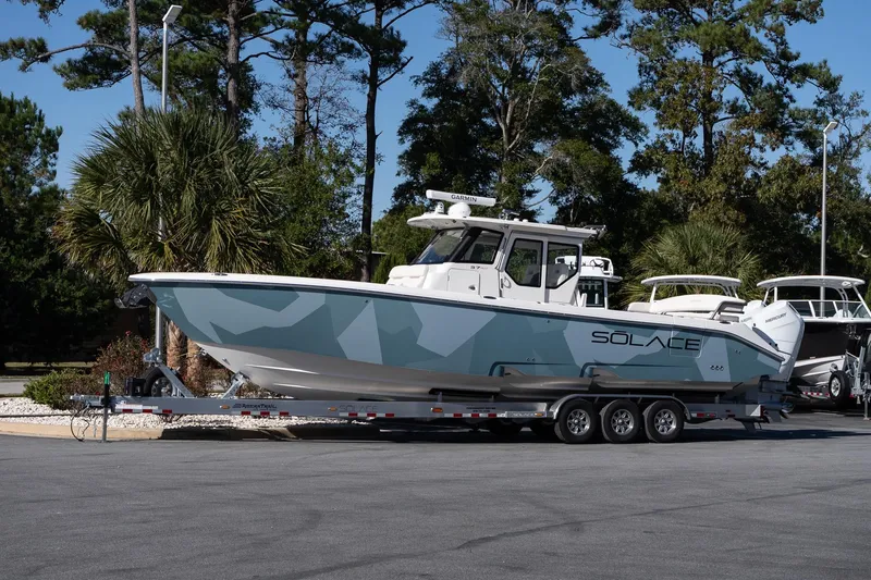 The 2026 Solace 37 Pilot delivers a protected, climate-controlled helm, a wide and confident offshore ride, and the performance of triple Mercury V10 425s. Designed for extended travel, serious fishing, and premium comfort, this model brings together advanced technology, refined fit and finish, and the standout ride quality Solace is known for.