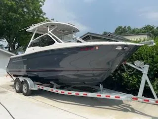 Features a Single Yamaha 4-Stroke 300-hp Gas Engine with 61.6 original hours. Notable features include but not limited to the following: Hard Top, 2023 Tandem Axle Trailer, Head (Enclosed / Manual-Flush), Garmin (Color / Touch Screen) GPS/Chartplotter / Sounder, Garmin Auto-Pilot, VHF Radio, Automatic Trim Tabs, Cockpit Refrigerator, Bow-Thruster, Docking Lights, Underwater Lights, Front and Rear Cameras, Windlass Anchor, Built in Rod Holders, Transom Livewell, Electric Grill, Premium Bluetooth Sound System, and MUCH more!