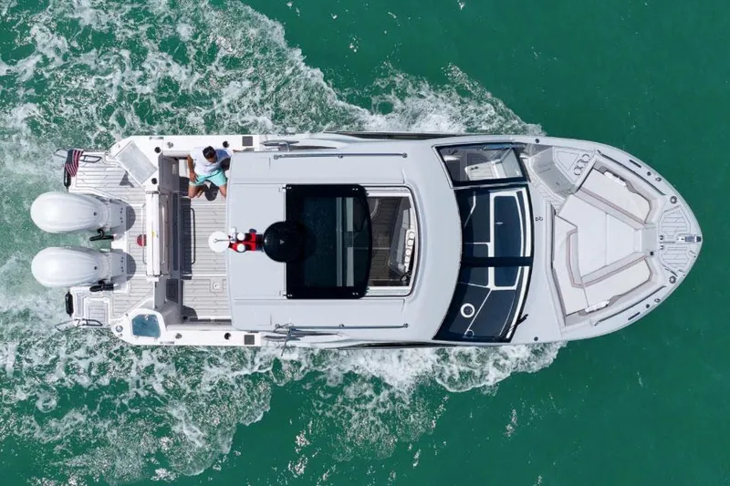 The Solara S-310 Sport Coupe takes entertainment and adventure to an entirely new level. This feature-rich 31' coupe is designed to play, host, stay, fish and more. It's built upon our advanced double-stepped deep-V hull with laminar flow interrupters and powered by twin Yamaha F300 outboards. True to the Solara Standard, the S-310 SC is loaded with premium features. State of the art electronics include twin Garmin 8612 chartplotters, Bluetooth enabled Fusion stereo system, auto-leveling Lenco trim tabs, bow and stern cameras, and Helm Master level 3 autopilot, all as standard equipment. Premium Lithium (LiFePO4) house batteries provide extended power while away from the dock.