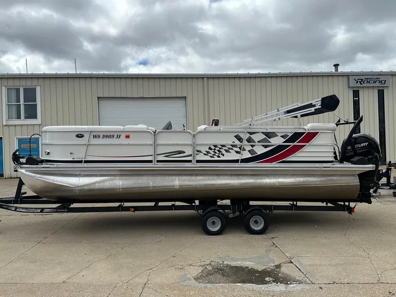 This 2014 South Bay is a nice clean boat, metallic white in color with flag graphics. Boat has electric anchors front and back, ski tow, privacy room and a upgraded stereo. Boat is powered by a Mercury 150XL with 379 hours on it. Boat also comes with a tandem axle bunk trailer. Boat is turn key and ready for water.t boa Come check it out.
