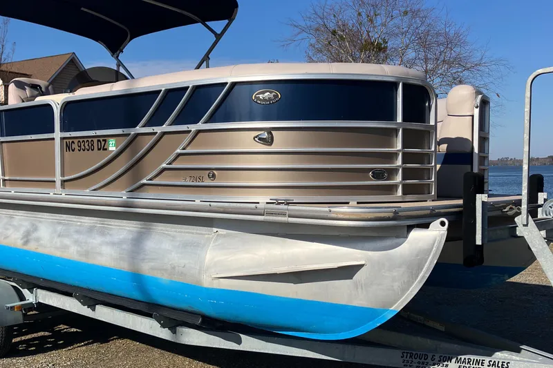 Introducing the 2013 Southbay 724, a stunning 24-foot pontoon boat that perfectly blends style and functionality. Crafted from durable aluminum, this boat boasts a sleek pontoon shape, ensuring stability and smooth navigation on the water. Powered by a reliable 115 hp Yamaha outboard engine, it promises exhilarating performance and effortless cruising. Designed for social gatherings, the Southbay 724 comfortably accommodates up to 12 passengers, making it ideal for family outings or entertaining friends. Its spacious layout invites relaxation and enjoyment, whether you're lounging under the sun or enjoying a leisurely ride. With its robust construction and modern design, this used pontoon boat is a fantastic choice for those seeking adventure on the water. Experience the joy of boating with the Southbay 724, where every journey becomes a memorable experience.