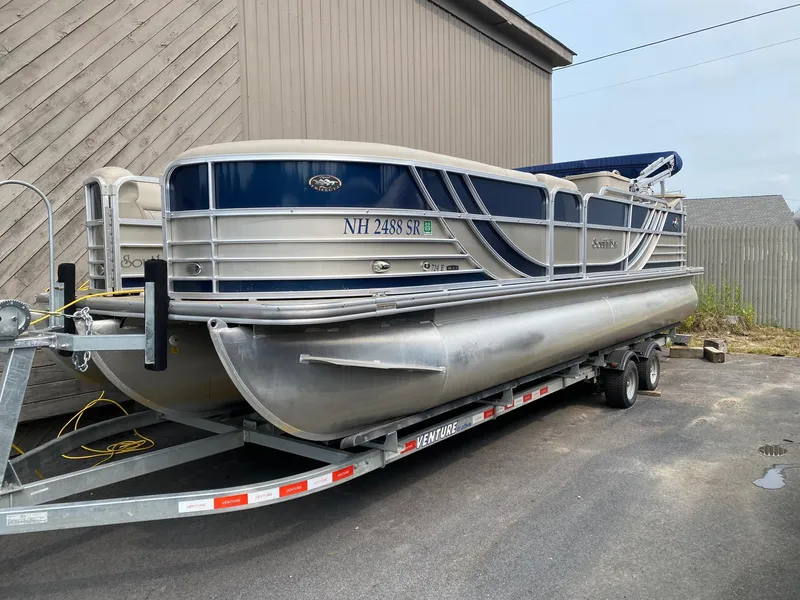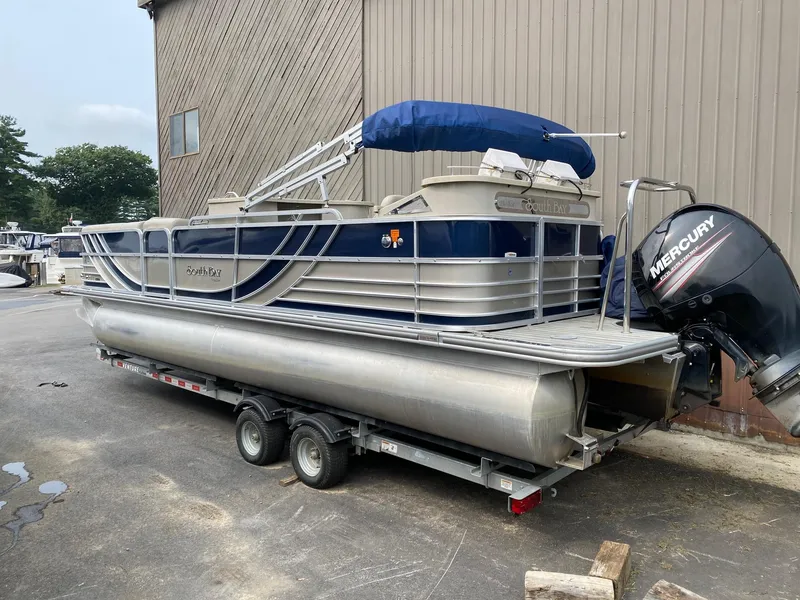 2015 Southbay Bay 724E, 25' Tri-toon-sport- pontoon boat for sale. Purchased new in 2016 (showroom leftover). Equipped with a 150 HP 4- stroke EFI Mercury outboard. Engine has around 400 hours on it. Boat seats 10-12 easily and has ample storage space jackets, anchors, toys and supplies. Comes with a 2016 tandem axle trailer, also purchased new in 2017, that has less than 100 miles on it. Boat is factory equipped with the following:
